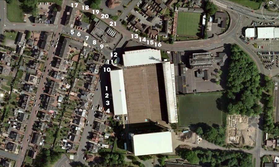 Buses 5 – 9 to pick up point, Edward Street (in front of Fir Park Club)